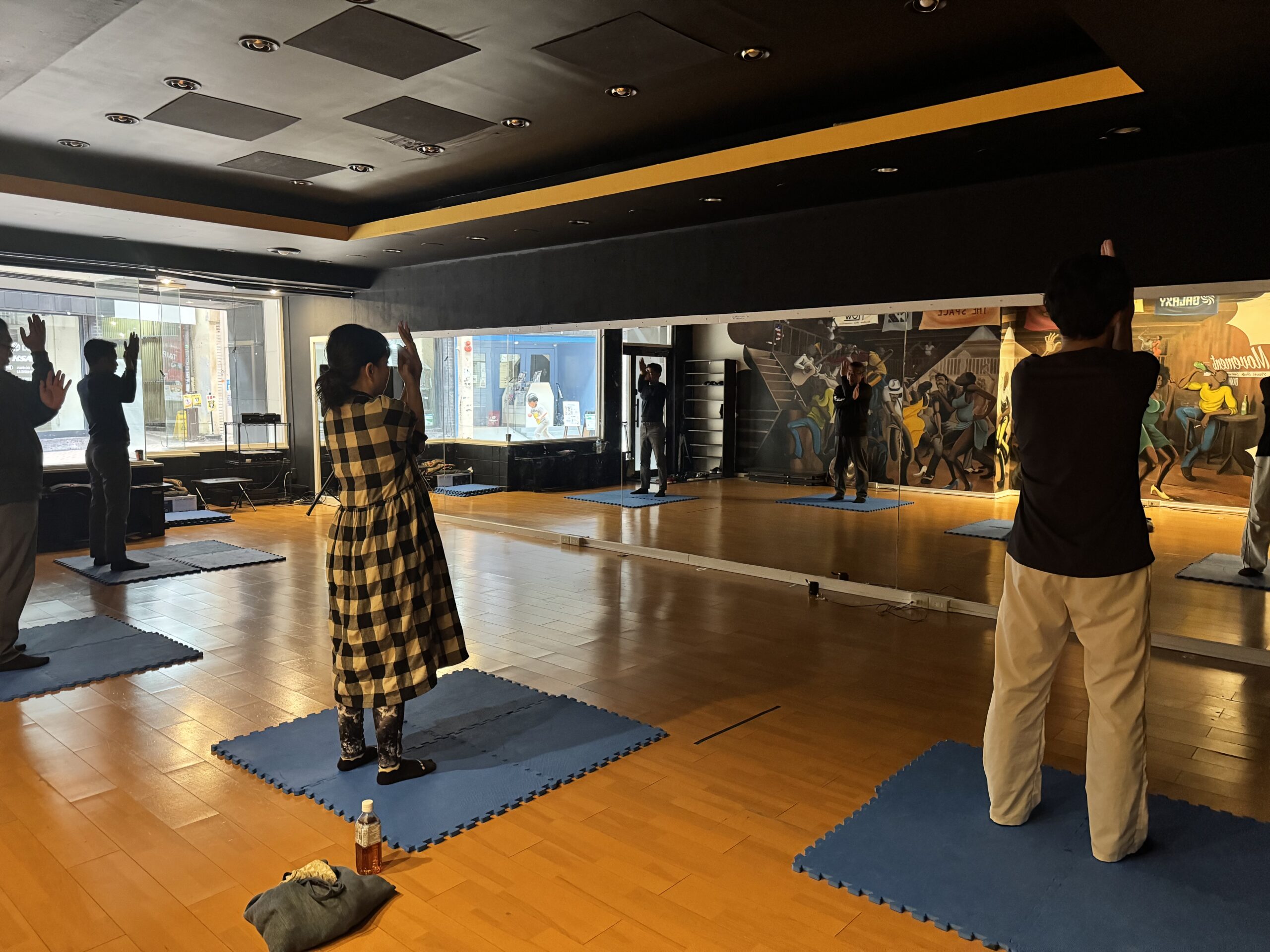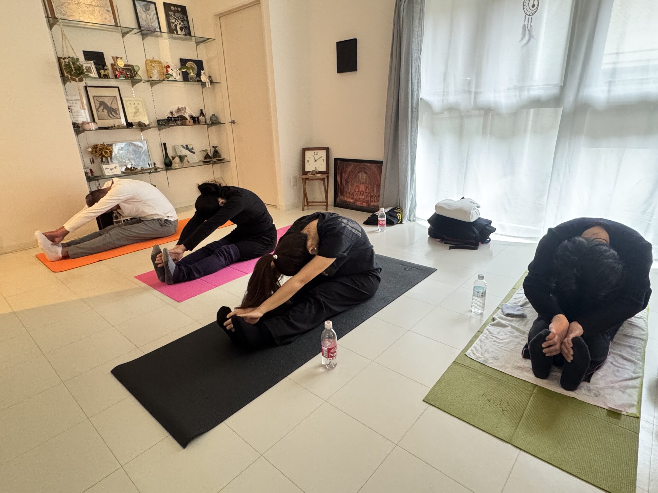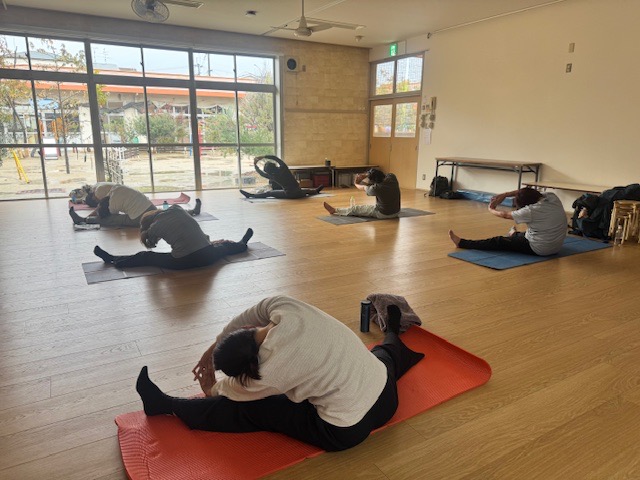 持ち物:ヨガマット(大判バスタオルでも)、タオル、水分、動きやすい服装、靴下